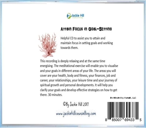 This CD is deeply relaxing and at the same time energising. However, to be successful in achieving those goals in life you desire, it is important to maintain goal-setting focus. The meditation exercise will enable you to do just that. You will be able to visualise and your goals in different areas of your life. The areas you will cover are the following: